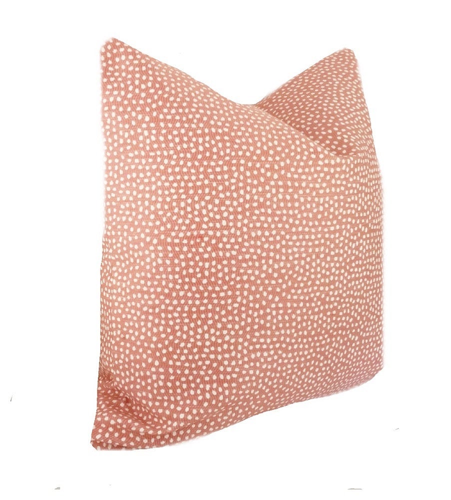 Robert Allen pattern Flicker is a fun and abstract spotted coral colored pillow cover.